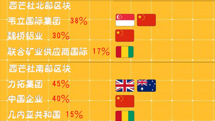 2010年中资介入,力拓集团和中铝铁矿合资拿下南部两区块的采矿权,中资才站稳脚跟,2019年由韦立国际、中国宏桥等组成的“赢联盟”拿下北部区块,但也接受了承担铁路港口的苛刻条件,2022年,中国宝武入股并成为最大股东,中国企业才占据了主导地位。